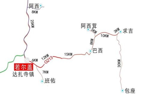 劉旭峰說,長征郵路單程108公里,從若爾蓋縣城出發(fā),沿途途徑班佑13公里-巴西34公里-阿西茸13公里-求吉18公里,最后到達(dá)包座30公里。