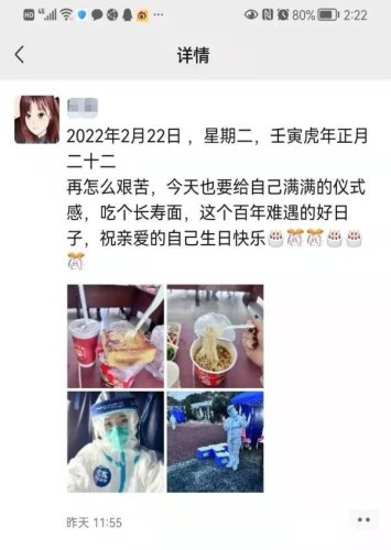 朋友圈里,他這樣記錄道:“2022.2.22在有愛的日子里,和抗疫一線的愛人并肩作戰(zhàn),期待生機(jī)勃勃的蘇式生活早日歸來!”