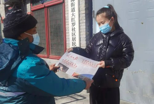 投遞員將最新兩會消息送達(dá)訂戶手中