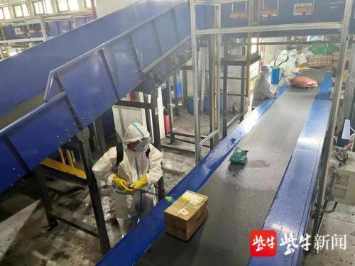 快遞來自全國各地,有的還來自疫情中高風險地區(qū),中國郵政集團有限公司南京市寄遞事業(yè)部副總經(jīng)理俞翔介紹,郵件抵達南京郵區(qū)中心后,郵區(qū)中心會對郵車和郵件進行全方位消殺;對于國際郵件和來自中高風險地區(qū)的郵件,在卸車后每一個郵件上快遞傳送帶,由專人對郵件進行逐件“六面”消殺。對于所有郵件,南京郵政都是包裝拆到哪一層,消毒就做到哪一層,力求防控細節(jié)到位。