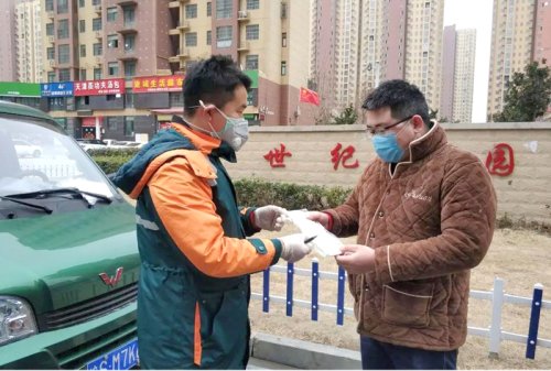 2月5日是亳州市首個開放限購口罩的日子,當(dāng)天市分公司收到訂單后,第一時間配送口罩。下午15時,家住世紀(jì)花園的張奎從郵政快遞員丁偉杰手上接過口罩,成為亳州市第一位收到政府限購口罩的市民。