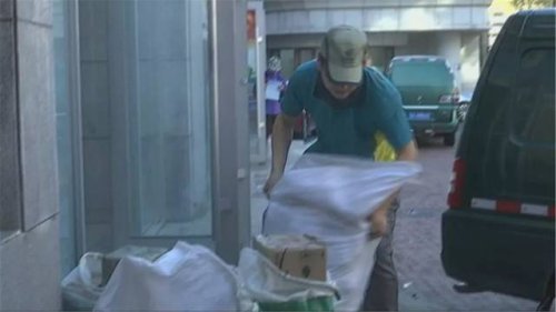 中國郵政集團公司長春市分公司 明德路營業(yè)部 主任 李波:報紙裝一袋,再加上雜志,都得超過一百斤(像這樣的,從卸車到二次分揀,再上車搬運,每個快遞員每天是不是都得背三四千斤的一個重量?)他們特班負責大戶單位,要超過這個數。