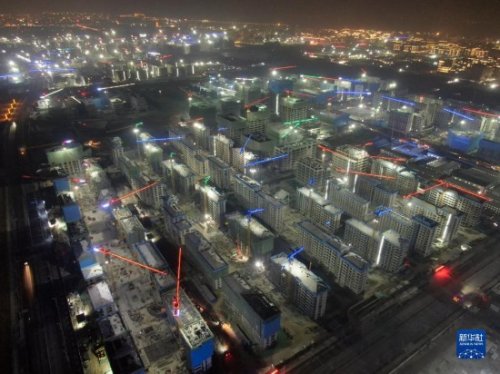 這是雄安新區(qū)容東片區(qū)華望城項目夜景(1月4日攝,無人機照片)。 新華社記者 駱學(xué)峰 攝