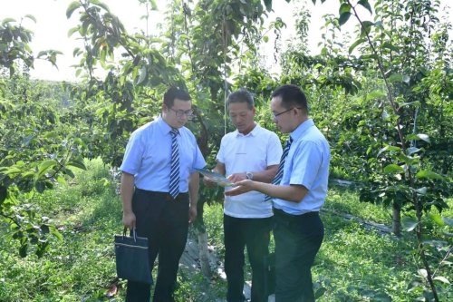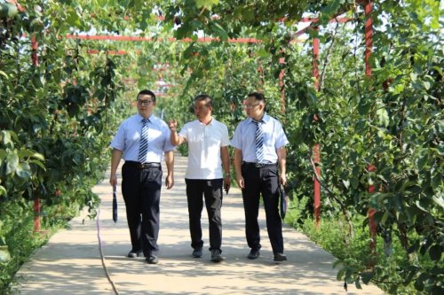 “崔老板,今年果園情況怎么樣?”一行人正在梨樹間穿行,就聽見幾人的腳步聲由遠及近追了上來,郵儲銀行淅川縣支行副行長劉楠和郵政投遞員付浩熟門熟路打起招呼。