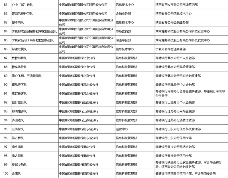 數(shù)據(jù)創(chuàng)新實(shí)踐勞動競賽通過比拼大數(shù)據(jù)分析技術(shù)在實(shí)際業(yè)務(wù)場景的數(shù)據(jù)賦能效果,激發(fā)了各級團(tuán)隊(duì)的大數(shù)據(jù)工作熱情。初賽系列賽事活動的組織推進(jìn),快速提升了參賽隊(duì)伍數(shù)據(jù)分析、建模技術(shù)能力,拓寬了參賽隊(duì)伍數(shù)據(jù)賦能思路,涌現(xiàn)出了一批能夠反映業(yè)務(wù)經(jīng)營實(shí)際、具有創(chuàng)新價(jià)值的研究課題,如直播選品、鏈?zhǔn)綘I銷、風(fēng)險(xiǎn)預(yù)警等。參賽隊(duì)伍以競賽為契機(jī)開展了跨專業(yè)、跨單位、跨板塊合作,深化了業(yè)技融合,在數(shù)據(jù)協(xié)同應(yīng)用上實(shí)現(xiàn)了有益探索。各級數(shù)據(jù)隊(duì)伍借助競賽的平臺優(yōu)勢,促進(jìn)模型算法技術(shù)共享,發(fā)掘一批有創(chuàng)新、有價(jià)值、可落地的數(shù)據(jù)分析建模項(xiàng)目,形成規(guī)模效應(yīng),助力郵政數(shù)字化轉(zhuǎn)型和高質(zhì)量發(fā)展。
