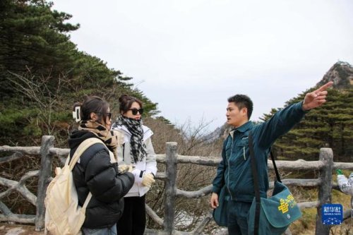2月1日,謝菲俊在投遞郵件的路上給游客指路。