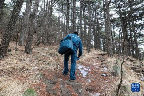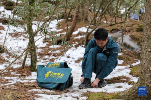 2月1日,謝菲俊在投遞郵件的山路上小憩。