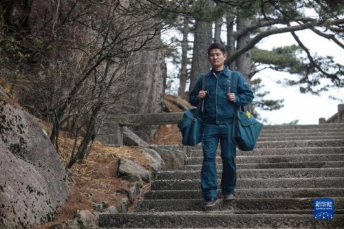 作為安徽黃山風(fēng)景區(qū)內(nèi)唯一的郵政步班投遞員,“90后”小伙謝菲俊每天要背負(fù)幾十斤的郵包在平均海拔1300多米的“云端”徒步12公里,上下臺(tái)階約12000級(jí),將各種郵件送達(dá)33個(gè)投遞點(diǎn)。由于山高路遠(yuǎn),又是安徽省海拔最高的投遞段道,謝菲俊被大家親切地稱為“云端信使”。