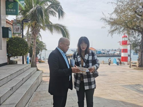 在外伶仃島上的玉帶環(huán)腰、摩崖石刻、拱橋渡水等景點,謝堅和稅務(wù)人員一道沿路向景區(qū)商鋪、行人游客宣講稅收優(yōu)惠政策,成為外伶仃島上一道流動的風(fēng)景線。