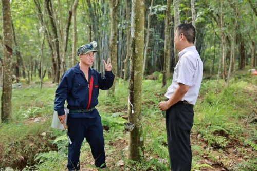 劉麗海在聊天中得知村民黎紅光有貸款的意向后,馬上將這條信息反饋給蘭洋鎮(zhèn)郵政支局局長(zhǎng)劉輝。第二天一早,劉輝就趕往黎紅光家的橡膠林。