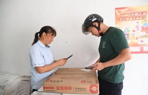 在郵政營(yíng)業(yè)員整理快遞的間隙,不時(shí)有村民來(lái)取快遞。羅牛村村民麻財(cái)寶收到快遞抵達(dá)鄉(xiāng)鎮(zhèn)的短信后,便騎著電動(dòng)車來(lái)免費(fèi)領(lǐng)取快遞。