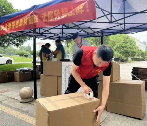 考慮到在校學(xué)生對學(xué)校和畢業(yè)生的情況都更熟悉,今年在郵校雙方合作基礎(chǔ)上,徐州郵政與學(xué)生會強化聯(lián)系,在駐點收寄期間,提供社會實踐名額,協(xié)助郵政人員進行校園包裹宣傳引導(dǎo),拉近服務(wù)距離,提升收寄效率。據(jù)徐州郵政校園寄遞負責(zé)人楊兆清介紹,他們在此基礎(chǔ)上創(chuàng)新了郵?!?+1”駐點服務(wù)模式,即在每棟宿舍樓下安排1名郵政人員和1名學(xué)校的實習(xí)生,提供各類咨詢和搬運服務(wù)等。