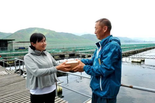 在江邊魚排工作的王曉云說