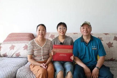“女兒,恭喜你!你的吉林大學(xué)錄取通知書到了,請(qǐng)簽收!”在驗(yàn)證過準(zhǔn)考證和身份證件后,呂啟光將吉林大學(xué)的高考錄取通知書鄭重地遞交到自己的女兒呂喆手中。