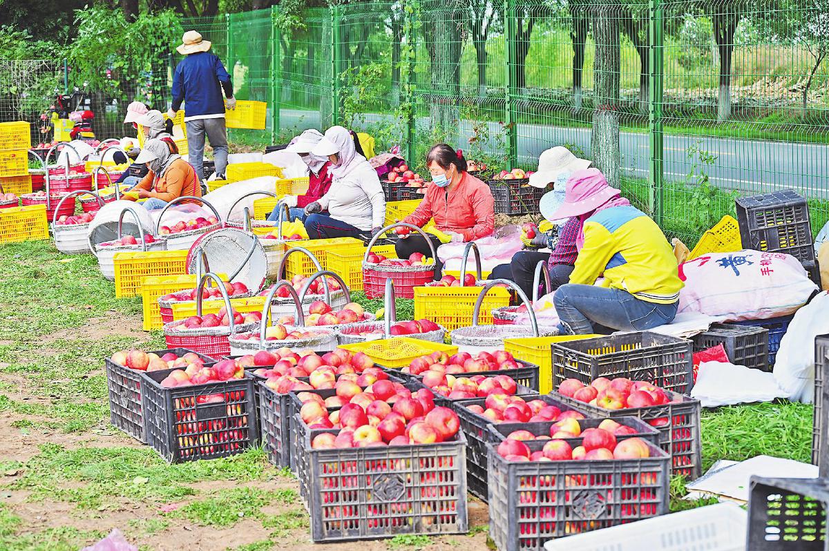 果農(nóng)在蘋果種植基地選果,準(zhǔn)備通過郵政發(fā)運(yùn)?!跬跣銟s 攝