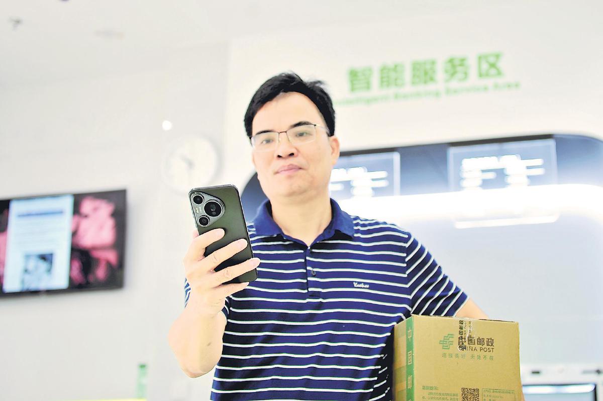 支局周圍的商戶常常會來自助寄件。在附近做了十多年電子產(chǎn)品生意的吳先禮是這個網(wǎng)點的???。說起網(wǎng)點的變化,他很有感觸:“以前來這個營業(yè)點寄東西,人多的時候要等不少時間;現(xiàn)在我提前在手機(jī)上下單,來了直接寄,像是自己家里有郵局,非常方便!”