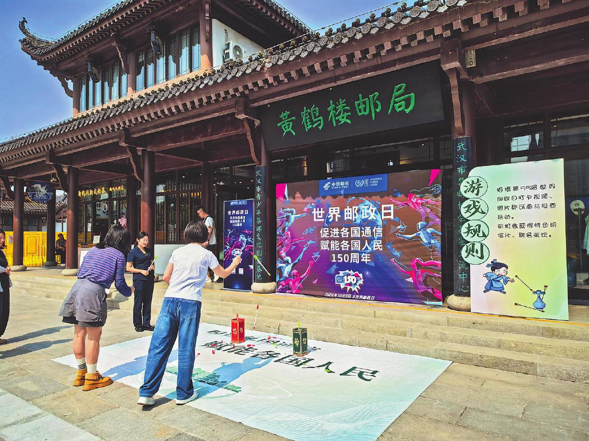 湖北省武漢市郵政分公司在黃鶴樓郵局、東湖高新政務(wù)中心以及全市各個(gè)郵政網(wǎng)點(diǎn)舉辦了形式多樣的世界郵政日主題宣傳活動(dòng)。位于黃鶴樓景區(qū)東門的黃鶴樓郵局在世界郵政日當(dāng)天開展了集戳打卡、趣味投壺、書畫展示等豐富多彩的活動(dòng),吸引了不少市民和游客參與?! 跣し肌£惥辍z