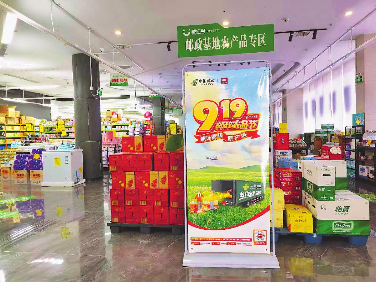 湖北郵政在當?shù)卮笮蜕坛O(shè)置郵政基地農(nóng)產(chǎn)品專區(qū)?!鹾纹G 攝