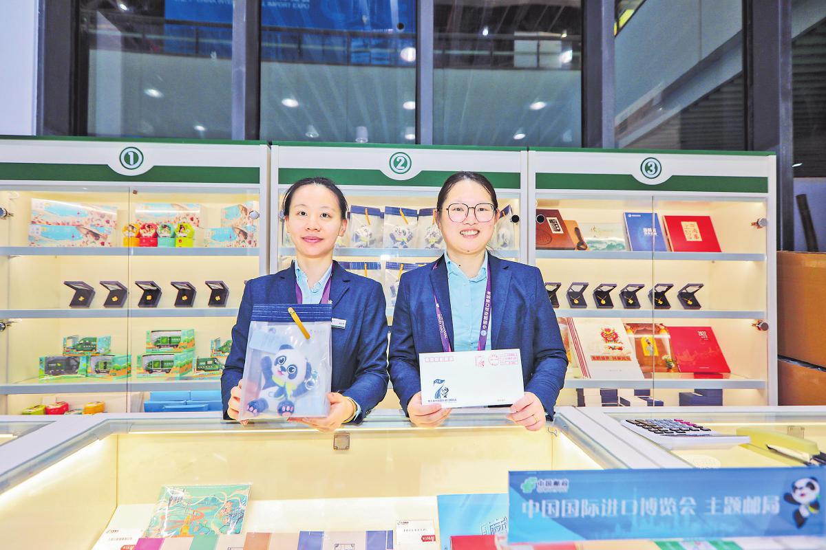 上海郵政為本屆進博會啟用了1枚單色郵資機宣傳戳,發(fā)行了1枚紀念封,具有特別的收藏價值。進博會開幕當天,在距離國家會展中心(上海)最近的徐涇郵政支局,郵迷們一早就紛至沓來,購買紀念封、加蓋郵資機宣傳戳,以特有的方式留下進博會記憶。在國家會展中心(上海),暖心的郵政服務同樣“在您身邊”。進博會主題郵局和臨時郵局以及在B、C、D辦公樓設立的服務點,提供郵件收寄、進博會日戳加蓋以及進博會紀念封、民族娃娃徽章明信片、以“黑神話悟空”為設計靈感的《西游記》集郵畫冊等特色文創(chuàng)產(chǎn)品銷售等服務。