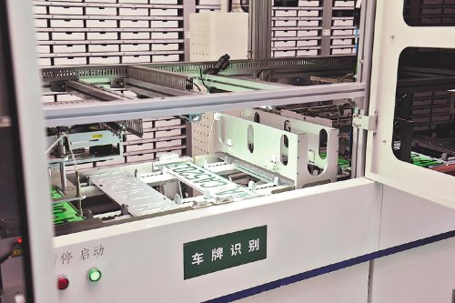 車牌自動(dòng)封裝一體機(jī)正在作業(yè)。