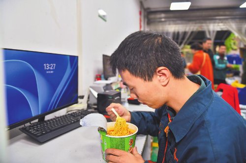 13:30,一直忙碌的劉孜力才顧得上吃碗泡面。