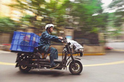 上午9點,一輛輛滿載郵件的電動車陸陸續(xù)續(xù)從攬投部駛出,每輛電動車的尾部都嵌有方形塑膠箱子。為了提高投遞效率,劉孜力和伙伴們放棄了裝載量更大的三輪車,利用“瘦身”的電動車多次快速穿梭在人流擁擠的大街小巷,盡管每次只能運載五六十件郵件。