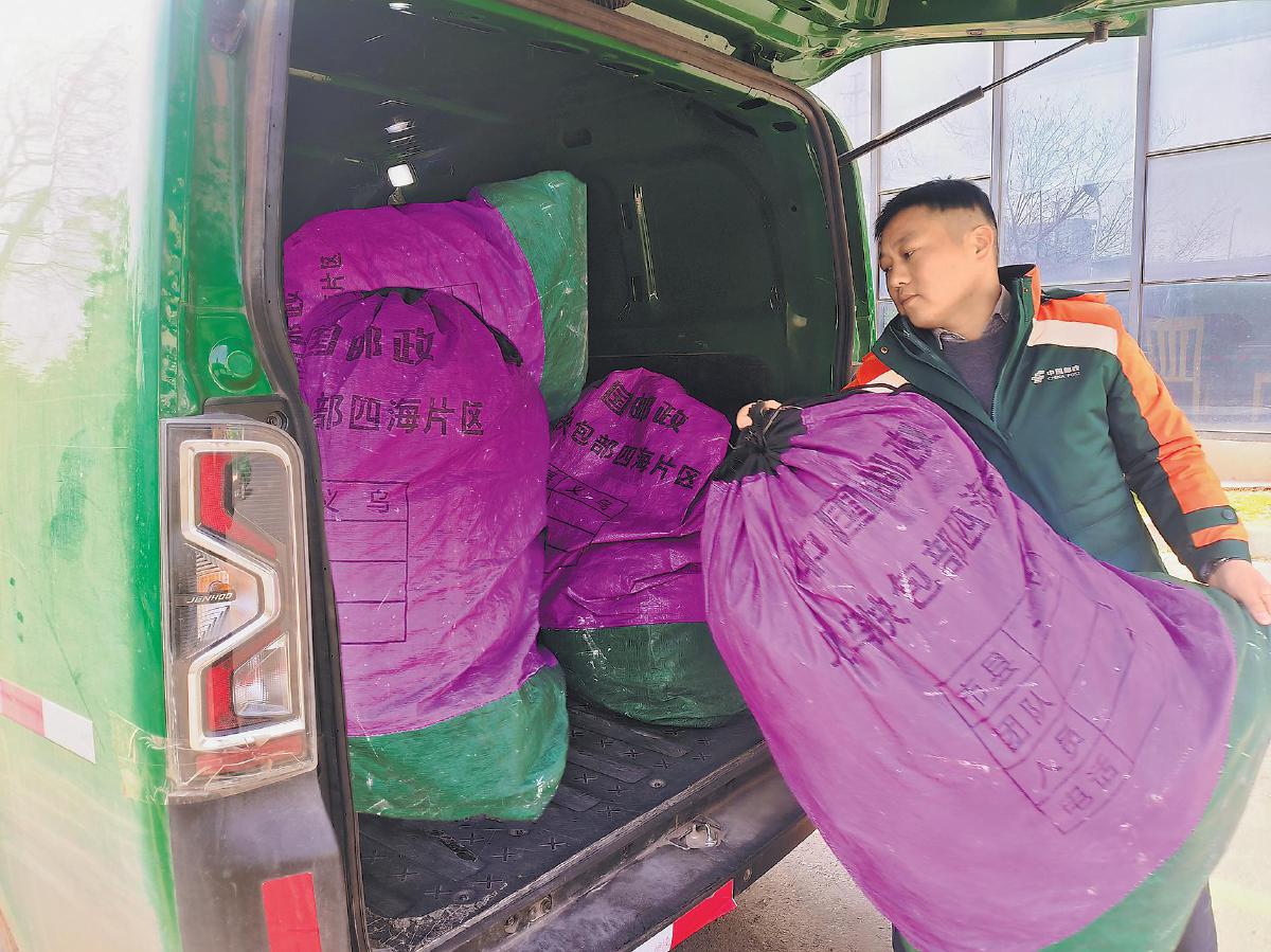 陳地久攬收郵件后裝車(chē)?! 鯀栭z
