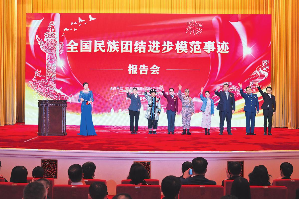 12月27日下午,由中央統(tǒng)戰(zhàn)部、黨和國家功勛榮譽(yù)表彰工作委員會(huì)辦公室、國家民委聯(lián)合舉辦的全國民族團(tuán)結(jié)進(jìn)步模范事跡報(bào)告會(huì)在北京人民大會(huì)堂舉行。包括桑南才在內(nèi)的8名全國民族團(tuán)結(jié)進(jìn)步模范集體和模范個(gè)人代表聚焦學(xué)習(xí)貫徹全國民族團(tuán)結(jié)進(jìn)步表彰大會(huì)精神,生動(dòng)講述圍繞鑄牢中華民族共同體意識(shí)主線團(tuán)結(jié)奮進(jìn)的感人故事。身著傈僳族盛裝的桑南才作為模范個(gè)人代表第一個(gè)登臺(tái)。