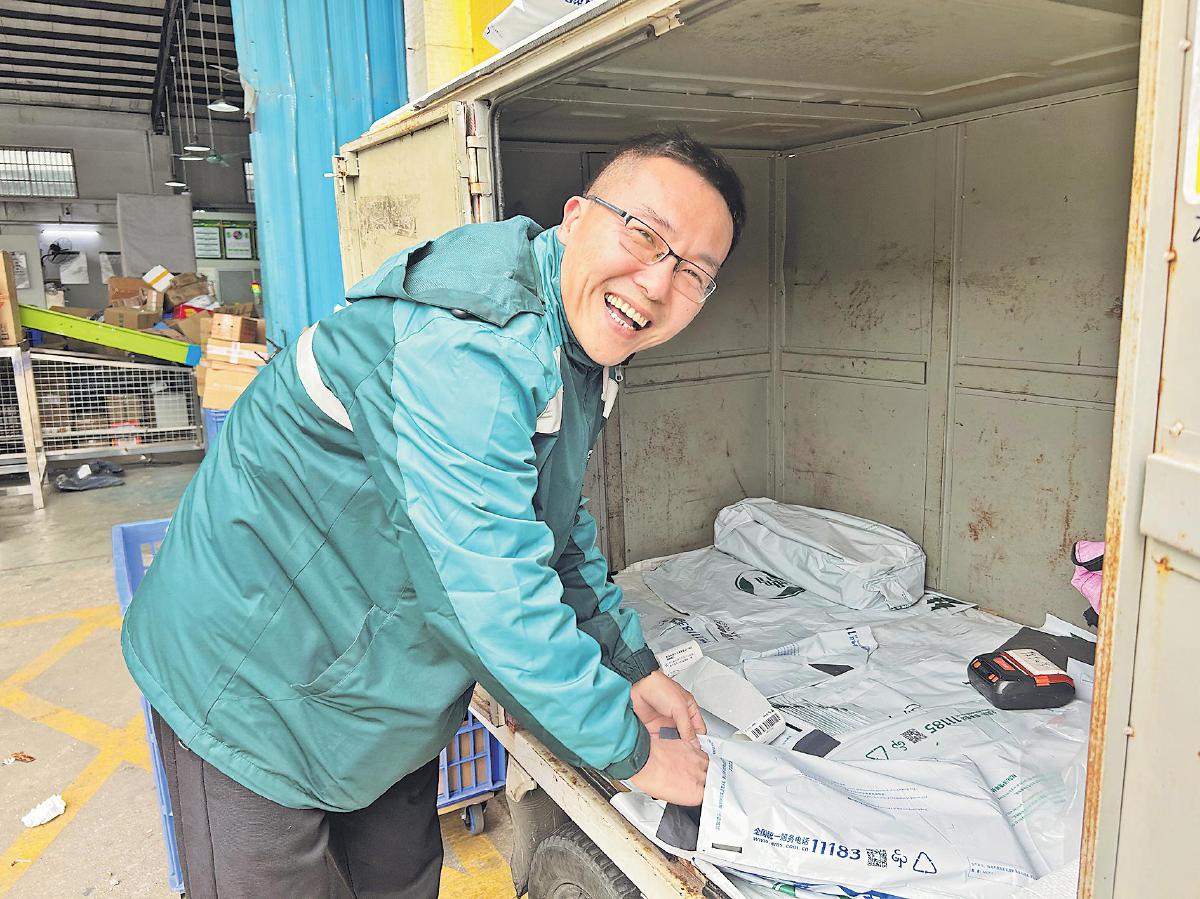 “樂(lè)天派”陳敬盛正在處理攬收郵件。