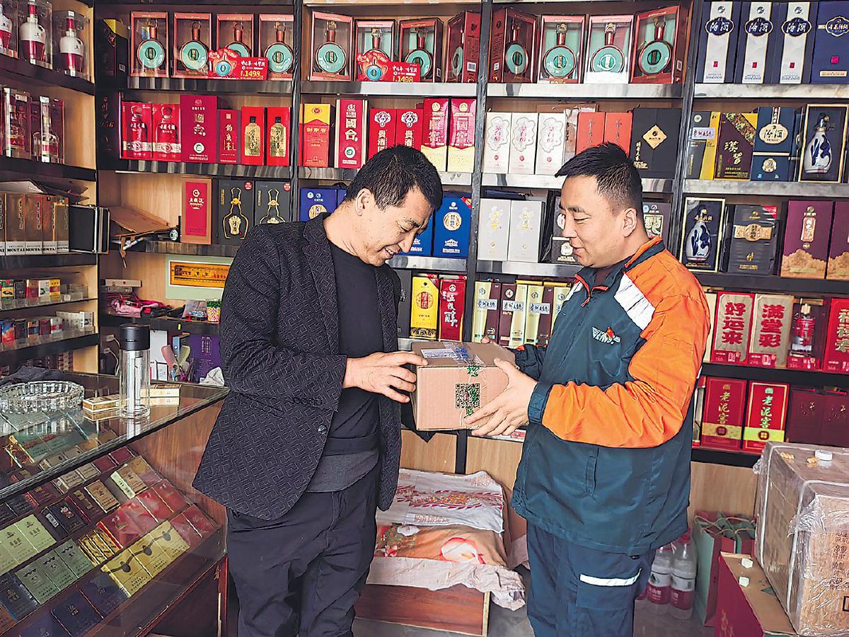 邊永慧(右)給商戶投遞郵件。