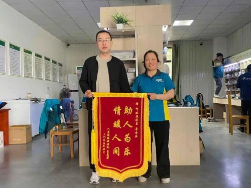4月14日,湖北荊州市沙市區(qū)太岳攬投部上演感人一幕,市民陳先生將一面寫著“助人為樂 情暖人間”的錦旗交到郵遞員李合英手中,代表其85歲父親感謝她的救命之恩。
