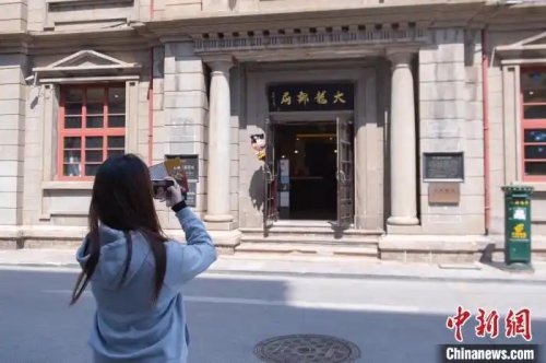 2025年4月,游客在煙臺大龍郵局建筑前拍照。曲正揚(yáng) 攝
