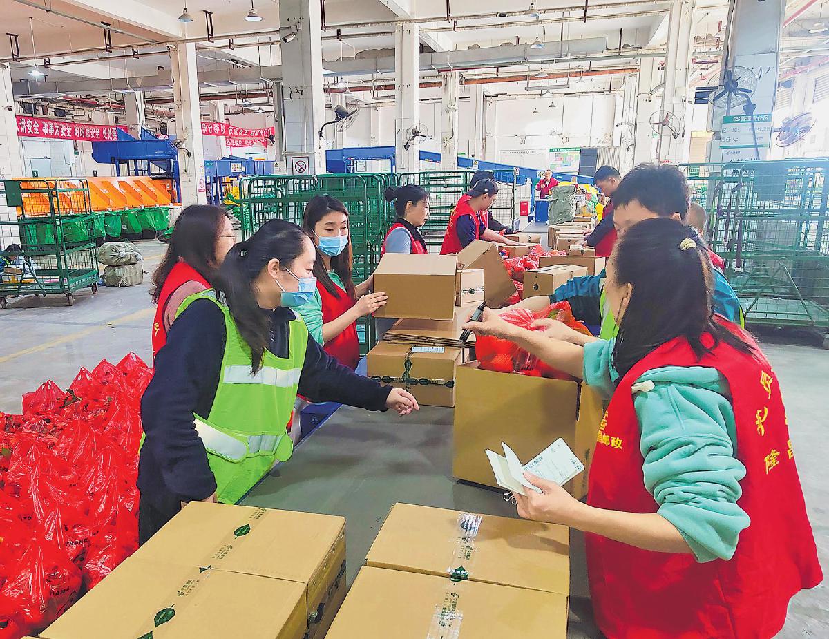 在隆昌郵政郵件處理中心,分揀人員和幫扶黨員準(zhǔn)備好泡沫箱、充氣柱、特制農(nóng)產(chǎn)品運(yùn)輸箱,熟練地打包上一場(chǎng)助農(nóng)直播銷(xiāo)售的600余單沃柑,訂單核對(duì)、產(chǎn)品分裝、貼單封箱、裝車(chē)發(fā)運(yùn),各環(huán)節(jié)高效銜接,6小時(shí)連續(xù)奮戰(zhàn)確保了所有包裹當(dāng)天發(fā)出。