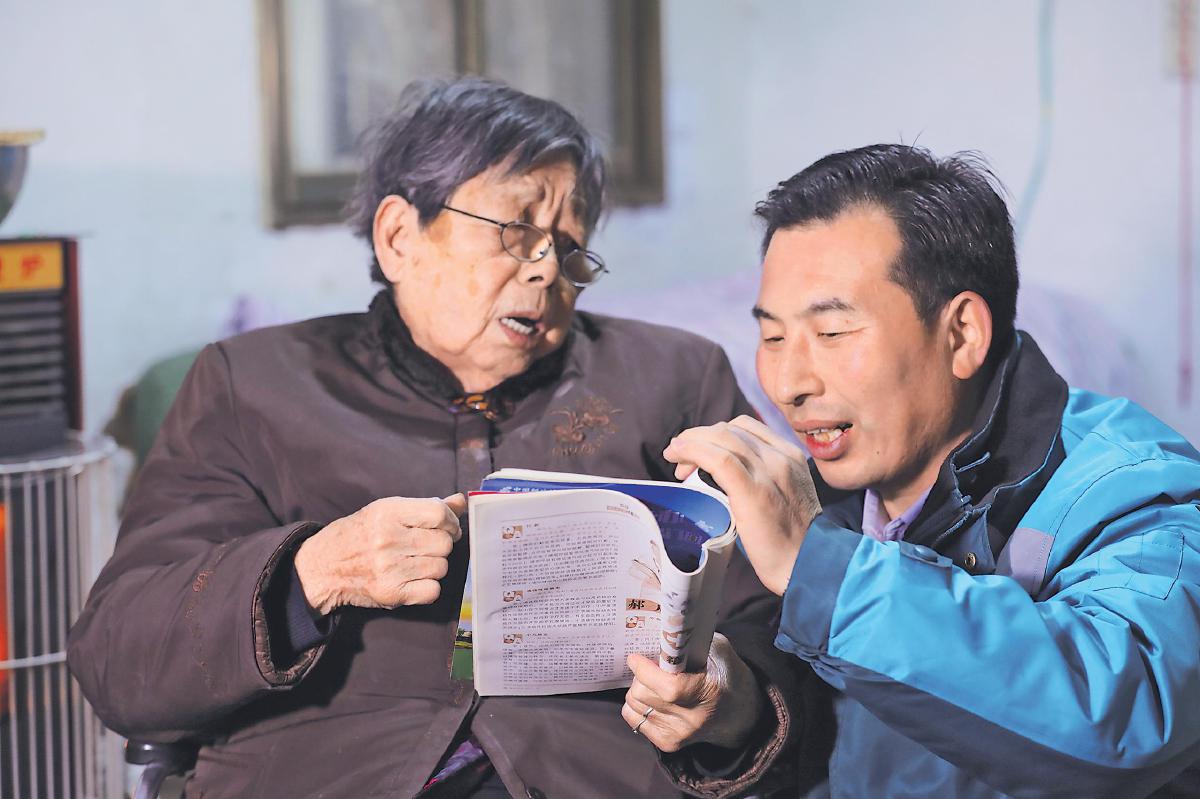 喬金濤常為郵路上的老年客戶讀報(bào)讀刊。