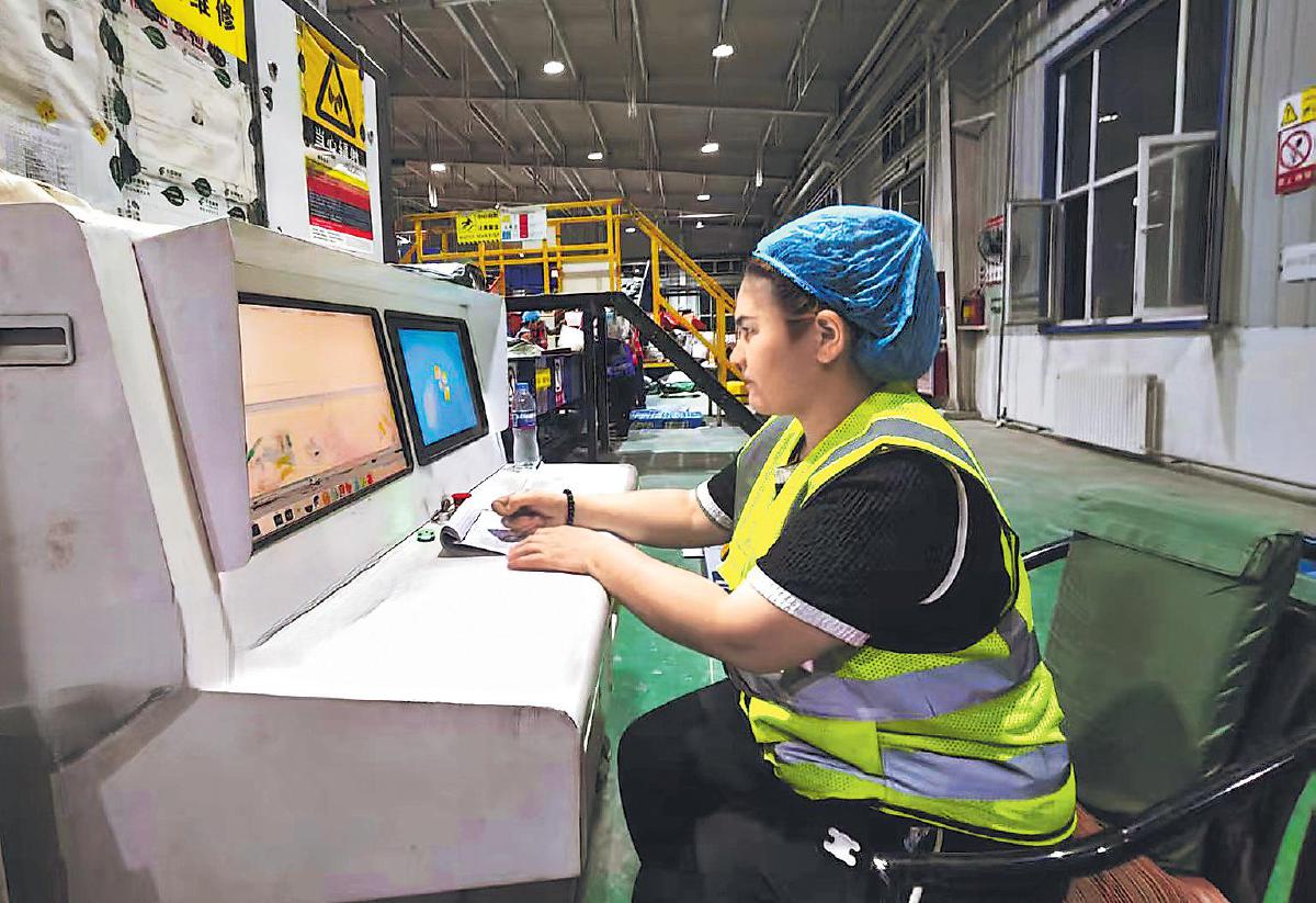 從5月底開始,新疆維吾爾自治區(qū)和田地區(qū)迎來一波快遞高峰。和田地區(qū)郵政分公司新增30名作業(yè)人員,后臺行政工作人員隨時支援一線生產(chǎn);新增5輛運輸車,加密農(nóng)村配送網(wǎng)絡(luò);254個格口的自動分揀機全速運轉(zhuǎn),包裹日處理能力達(dá)12萬件。圖為郵政工作人員通過安檢設(shè)備對進(jìn)口郵件進(jìn)行安檢。