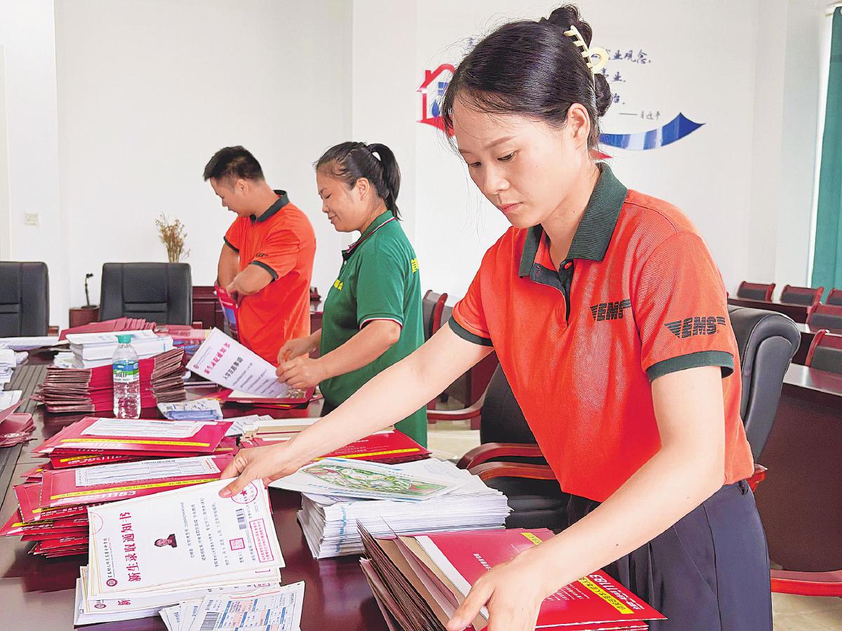 6月12日中午,江西省宜春幼兒師范高等??茖W(xué)校會議室里,宜春市袁州區(qū)郵政分公司工作人員一刻也不歇息,核對組緊盯考生信息與面單,封裝組規(guī)范折疊錄取通知書、嵌入入學(xué)資料,動作迅速、精準有序,僅3小時就將1019份單獨招生錄取通知書一一裝進“夢想的包裹”。下午3點,所有郵件完成封裝發(fā)運。