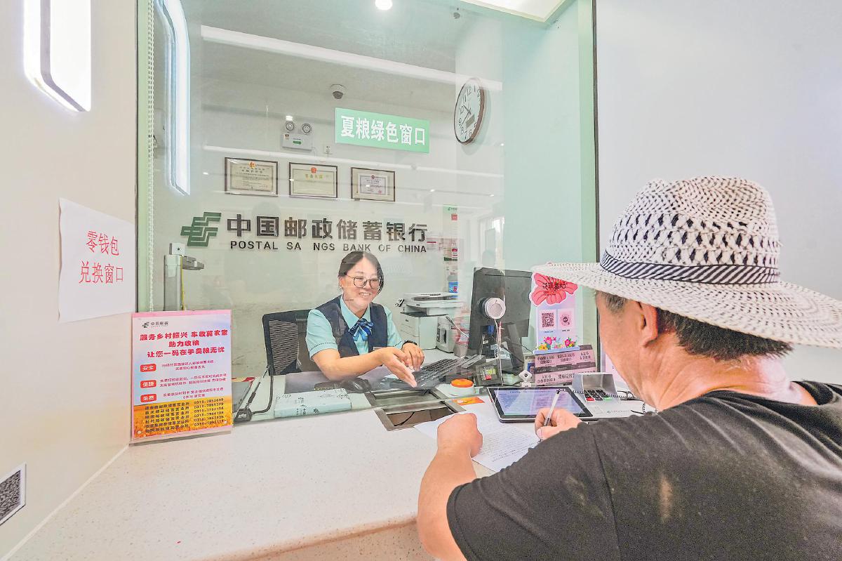 郵政網(wǎng)點(diǎn)為收糧點(diǎn)負(fù)責(zé)人、種植戶(hù)、收割機(jī)手等開(kāi)設(shè)夏糧綠色窗口。