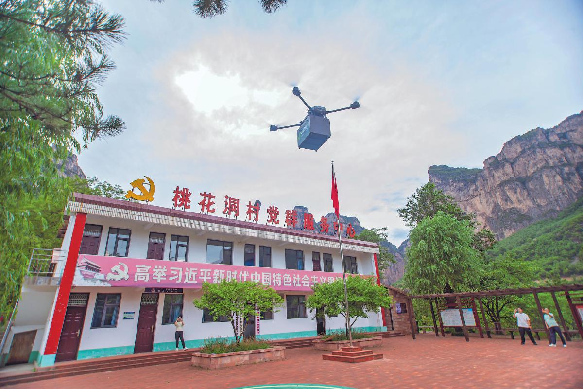 無(wú)人機(jī)抵達(dá)上坪村低空物流驛站。