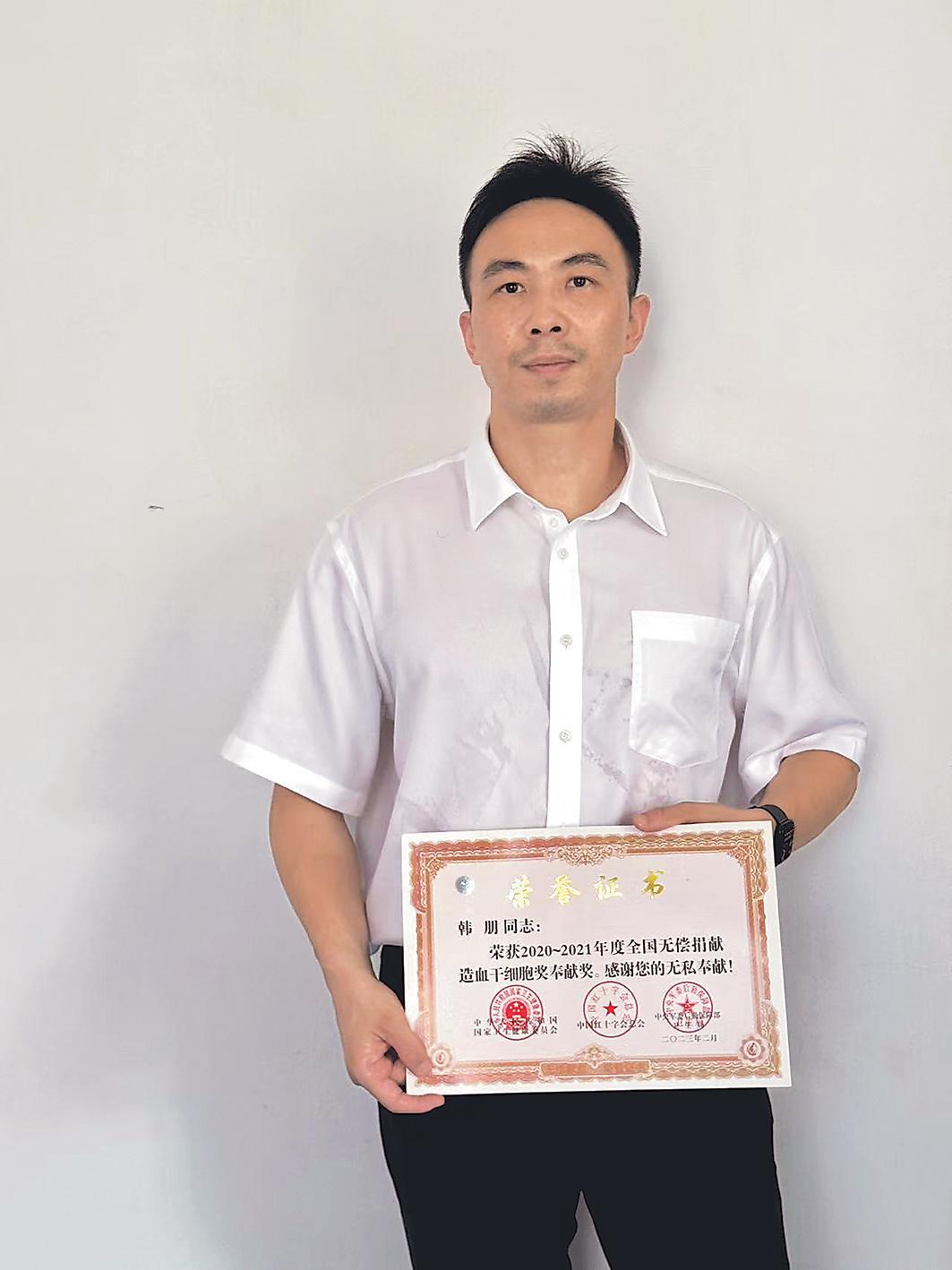 1981年出生的韓朋是同事眼中的“公益先鋒”,多年來堅持參與各類志愿服務(wù)。2011年,他在一次公益宣傳活動中了解到,造血干細(xì)胞移植對白血病、再生障礙性貧血等重癥患者有重要意義。懷著對生命的敬畏和助人的熱忱,他毫不猶豫地報名成為中華骨髓庫的一員。